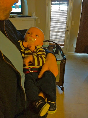 The fashion trend continued Sunday night when we went to Mary and Juan's. I usually don't like to dress babies like adults, but I do make exceptions. I love this track suit, but Sam was not too happy. It was the end of the night, and he was tired and hungry.