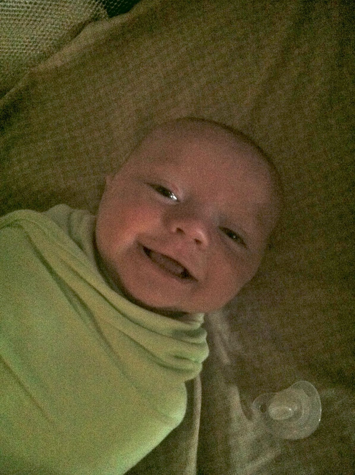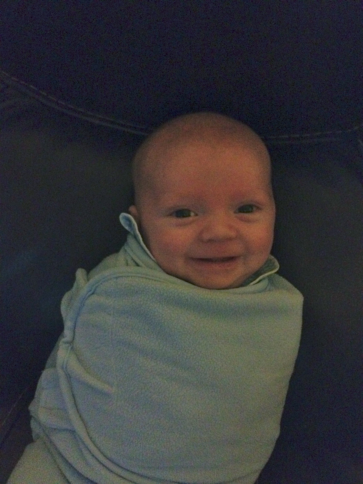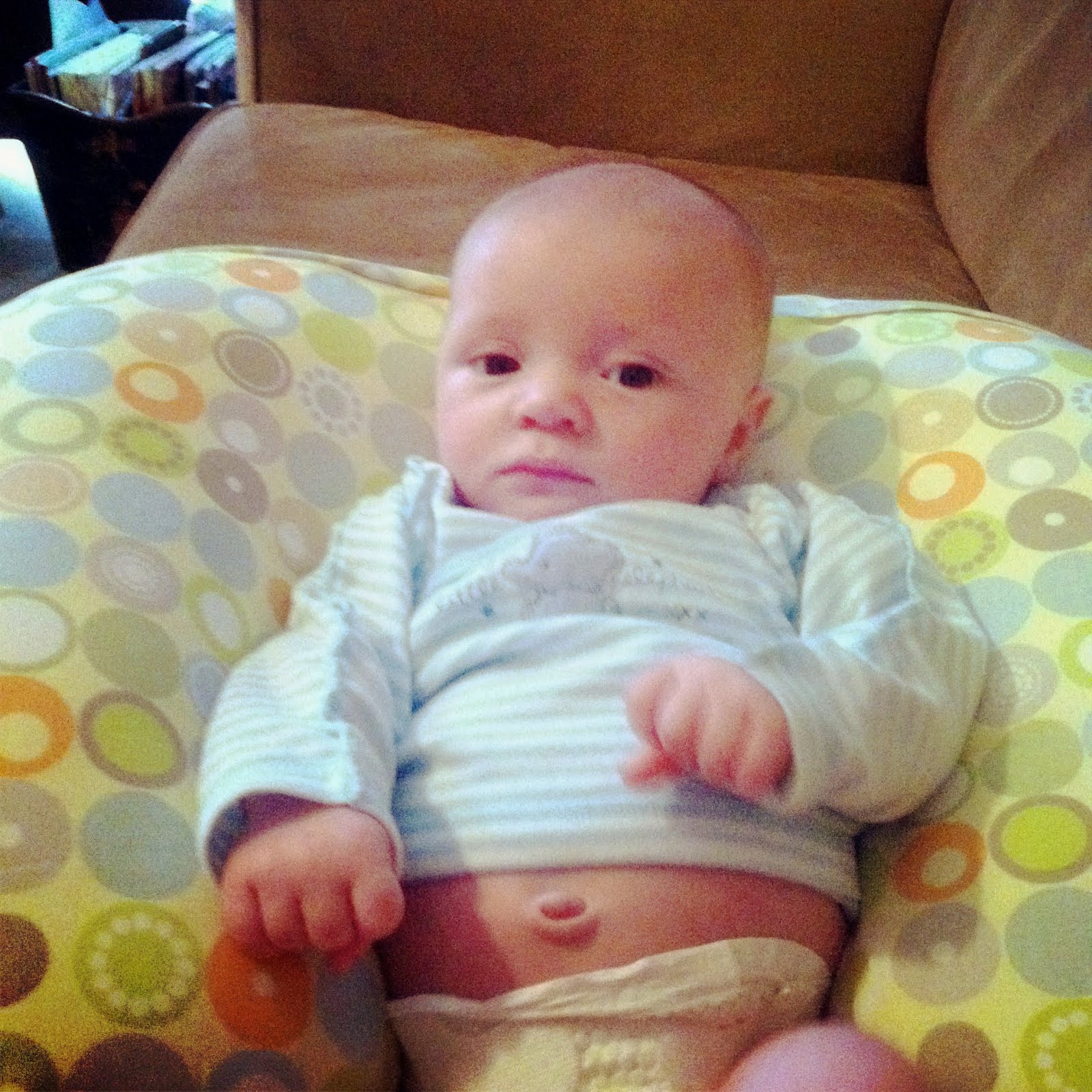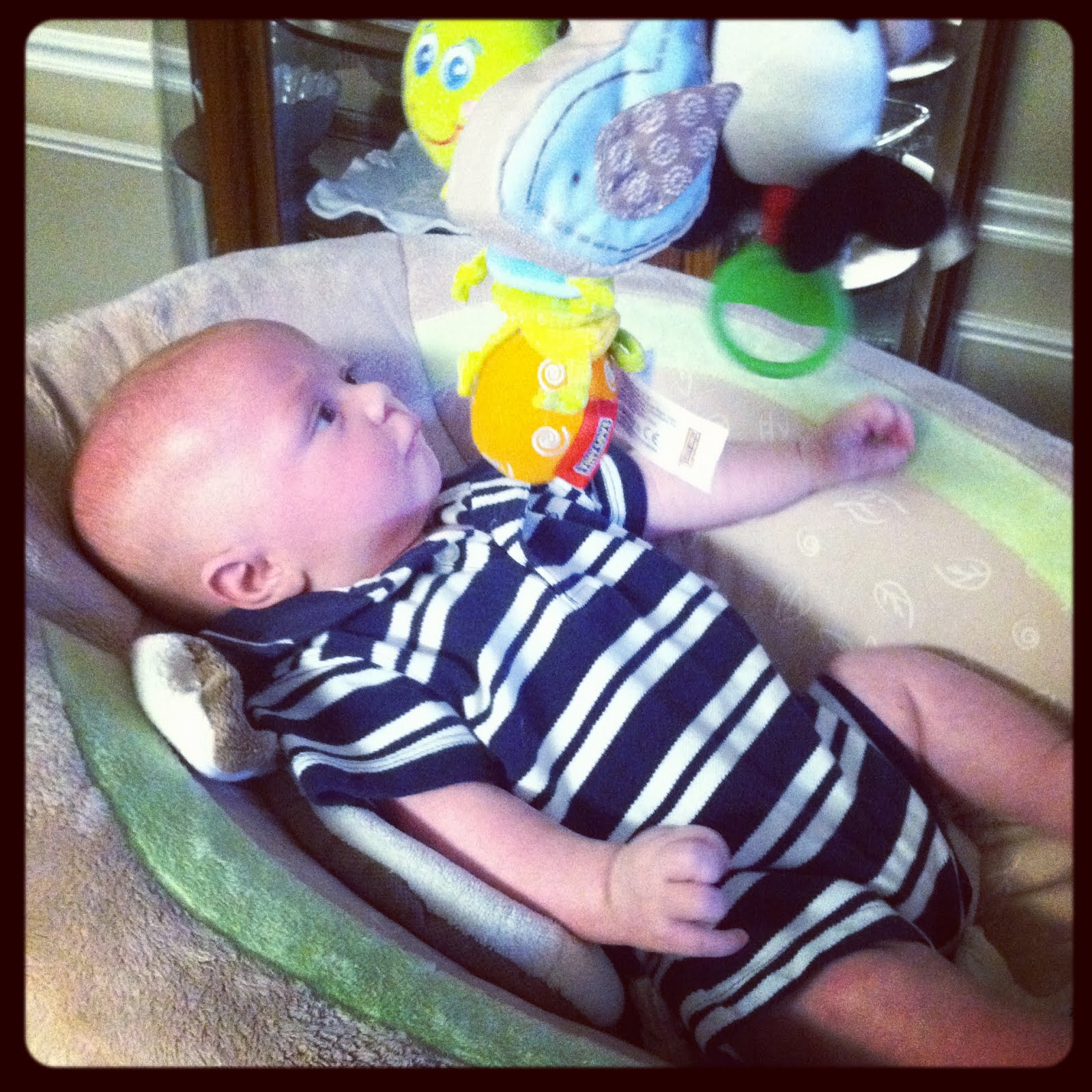 Just smiling in his chair. He's been really happy lately. He smiles all of the time. I cannot wait until he laughs!