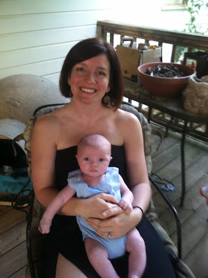 Sam's been very busy lately. He had his first deck party and has been spending a lot of time in his bouncy chair and boppy pillow. He's growing like a weed and is already in 6 month clothes. His two favorite pastimes are eating and cuddling.