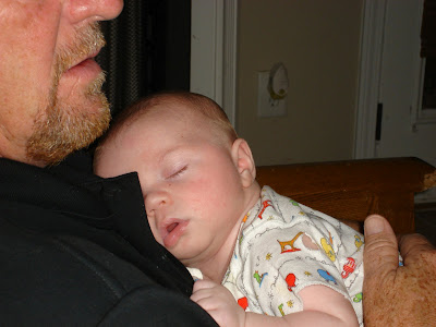 We were happy with Sam's stats. The doctor said that he was a little piggy. He is already eating almost 40 ounces a day, so the doc gave us the green light on giving him a little rice cereal. He said that his weight was trying to keep up with his growth, which explains his insane appetite. He asked if we had any tall people in our family...which we do. It will be exciting to chart Sam's development.