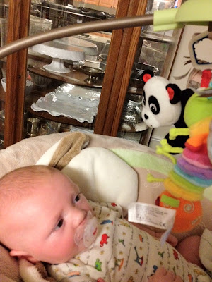 His appetite has definitely returned. He is loving the rice cereal. He ate 42.5 ounces yesterday...even with several servings of cereal. No wonder he slept until 8:30 this morning!