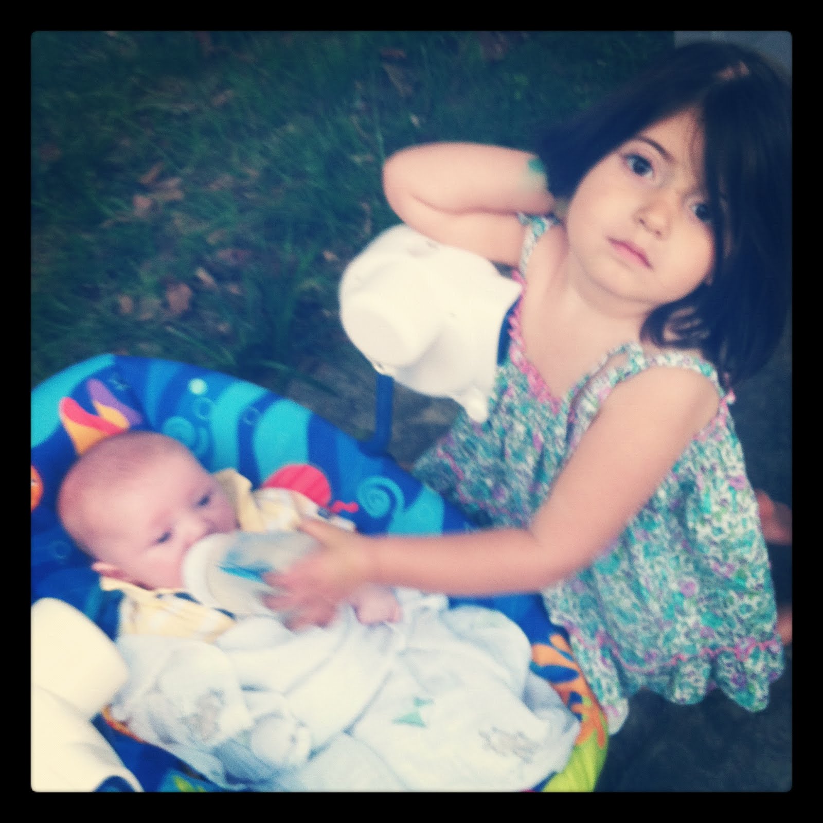 Sweet Zoe is already a little mommy. She always wanted to 'help' me with Sam. Here she is giving him his bottle.