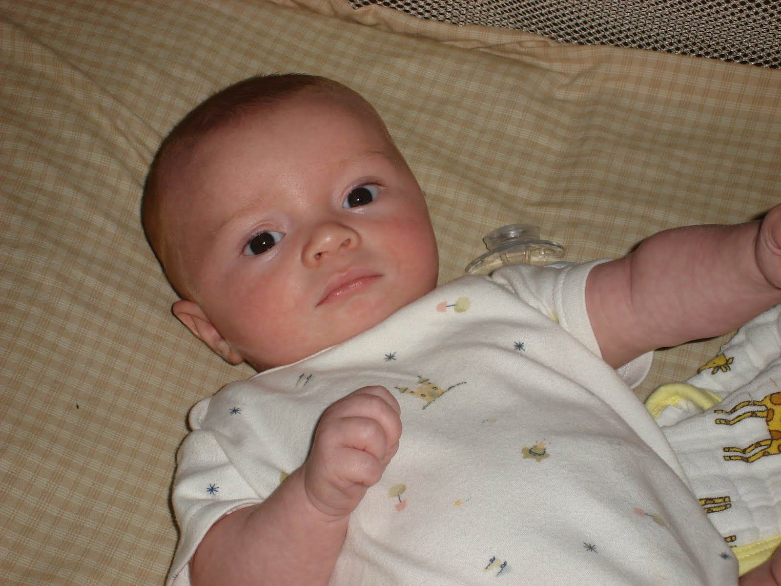 Goodbye swaddle! Sam is sleeping without his swaddle for the first time tonight. He woke me up at least 5 times last night (and Spencer two or three times) with both arms outside of his swaddle. He fights his way out so often we have decided he does not need it. I think he will sleep much better.