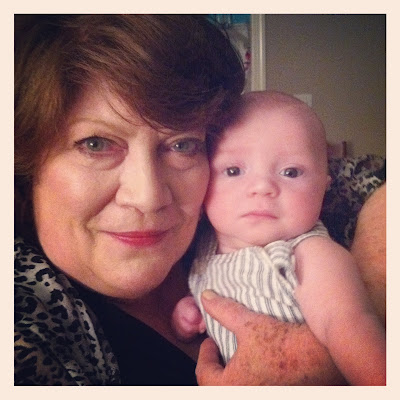 Poppie and Nana came over Sunday night and brought us dinner from Zoe's. Nana babysat yesterday so that I could run some errands and get ahead with work. GG should be here soon to keep Sam today and tomorrow. He has wonderful grandparents who love him very much!! He is one lucky little boy!