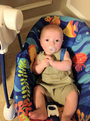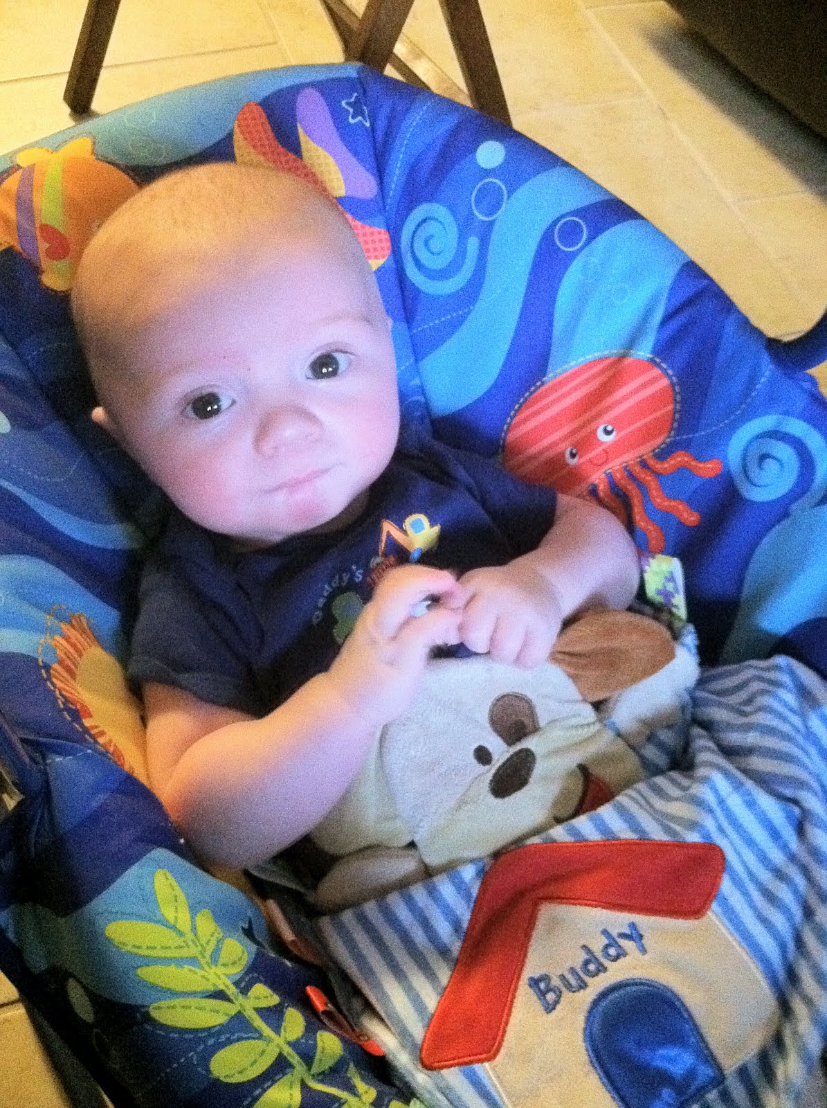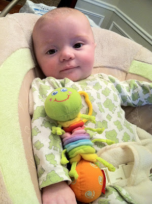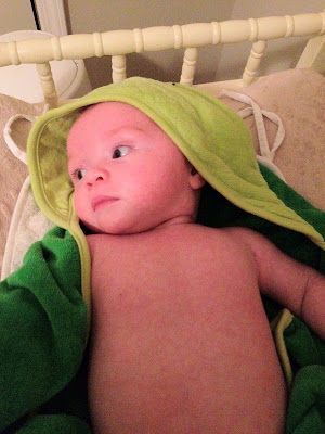 This picture is a few weeks old, but I love his little frog towel. He LOVES a bath.
